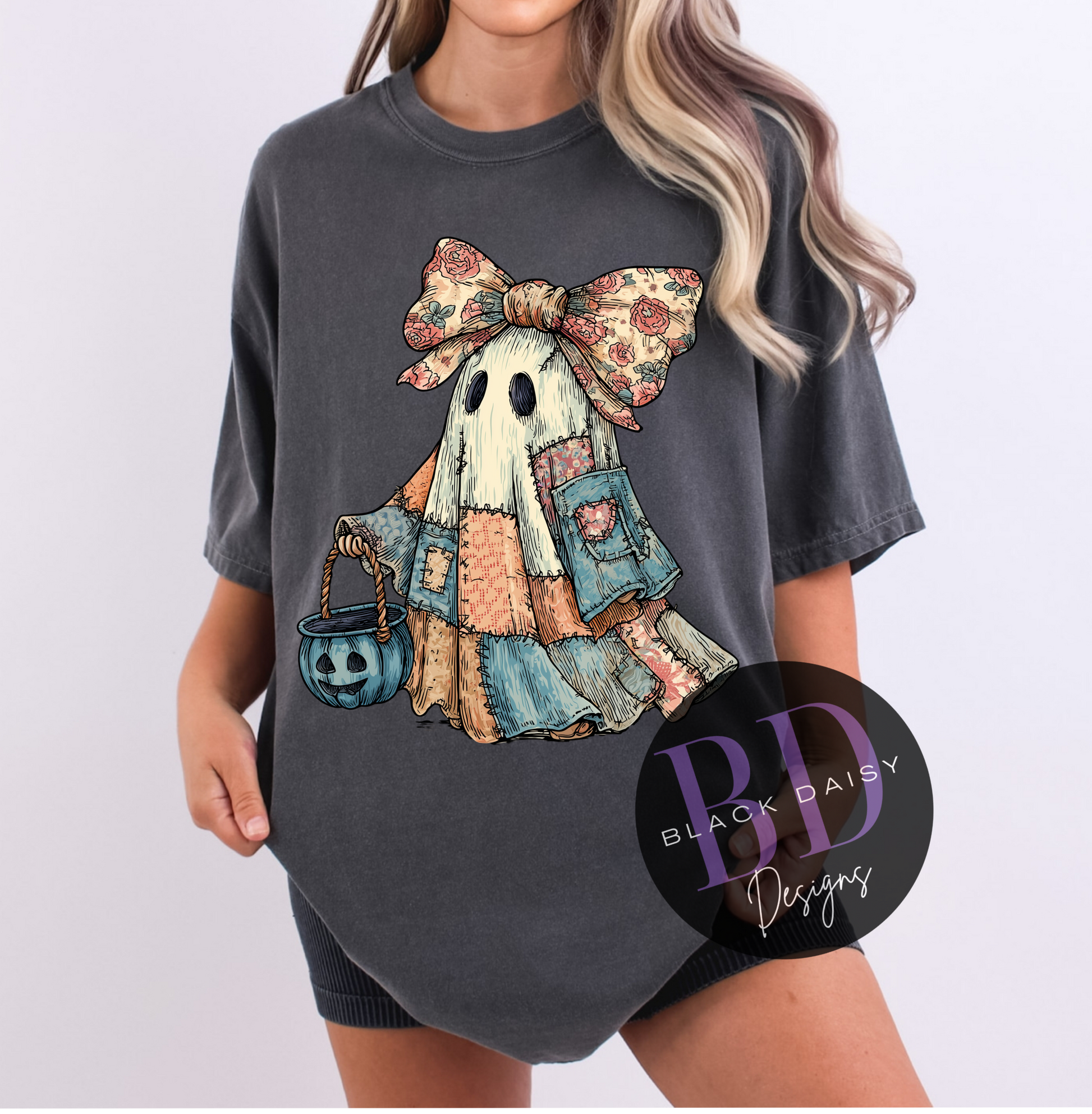 Our Patchwork Spooky T-shirt features a unique and vintage patchwork ghost design that will add a spooky touch to your wardrobe. Made with high-quality materials, this T-shirt is both comfortable and stylish. Perfect for Halloween or any time you want to add a bit of spookiness to your outfit.